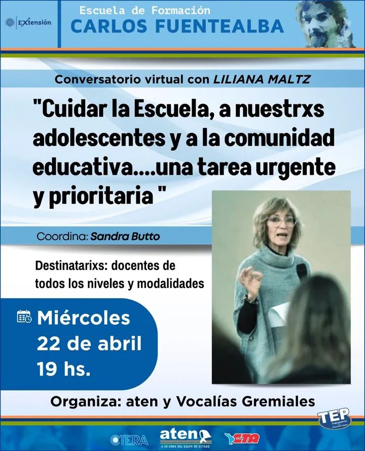 Como parte de las acciones impulsadas, el sindicato organizará un conversatorio virtual titulado “Cuidar la Escuela, a nuestrxs adolescentes y a la comunidad educativa… una tarea urgente y prioritaria”, que se realizará el miércoles 22 de abril a las 19 horas.